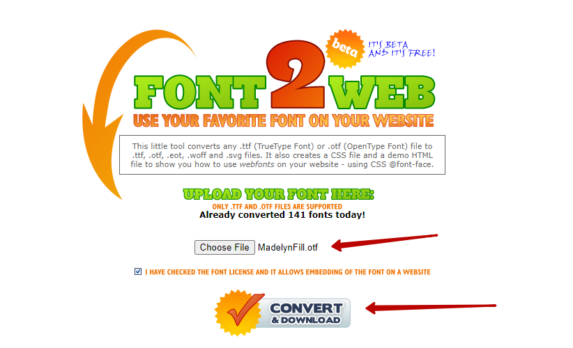 3. Click on the “Convert and “Download” picture (2), the download of the archive with all the fonts will start.