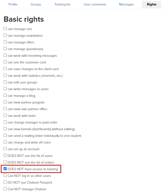 This right turns off an option of protection via Chatium Passport when getting access to trainings.